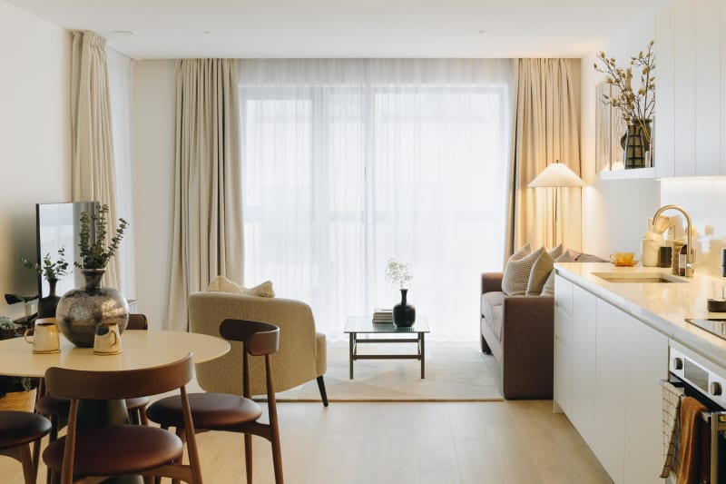 Stylish, spacious, and flooded with light, the apartments at Alma have a calm, pared-back aesthetic and a bespoke feel. Every detail has been carefully chosen, from the sustainably sourced furniture to the clever storage and subtle lighting. Each home is fully furnished and features floor-to-ceiling windows and a winter garden or terrace to bring the outside in.