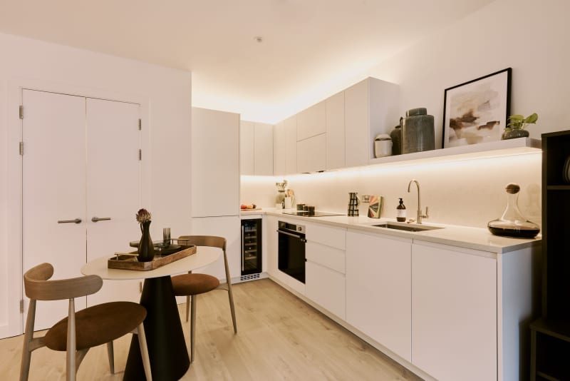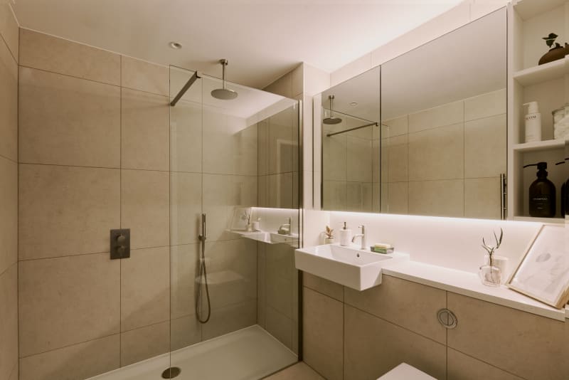 Thoughtfully designed, the studio apartments at Alma offer clever layouts that maximise space without compromising on style or comfort. The open plan kitchen, living and dining space opens onto a private winter garden, bringing the outside in. The bedroom space is separated from the main living area to give this studio the feel of a one-bed. The luxurious bathroom features a walk-in rainfall shower, heated floor and towel rails.